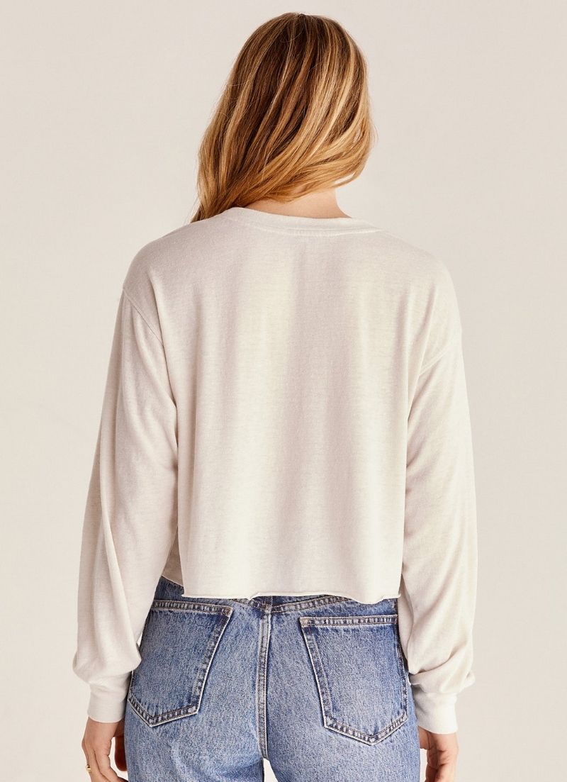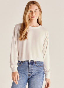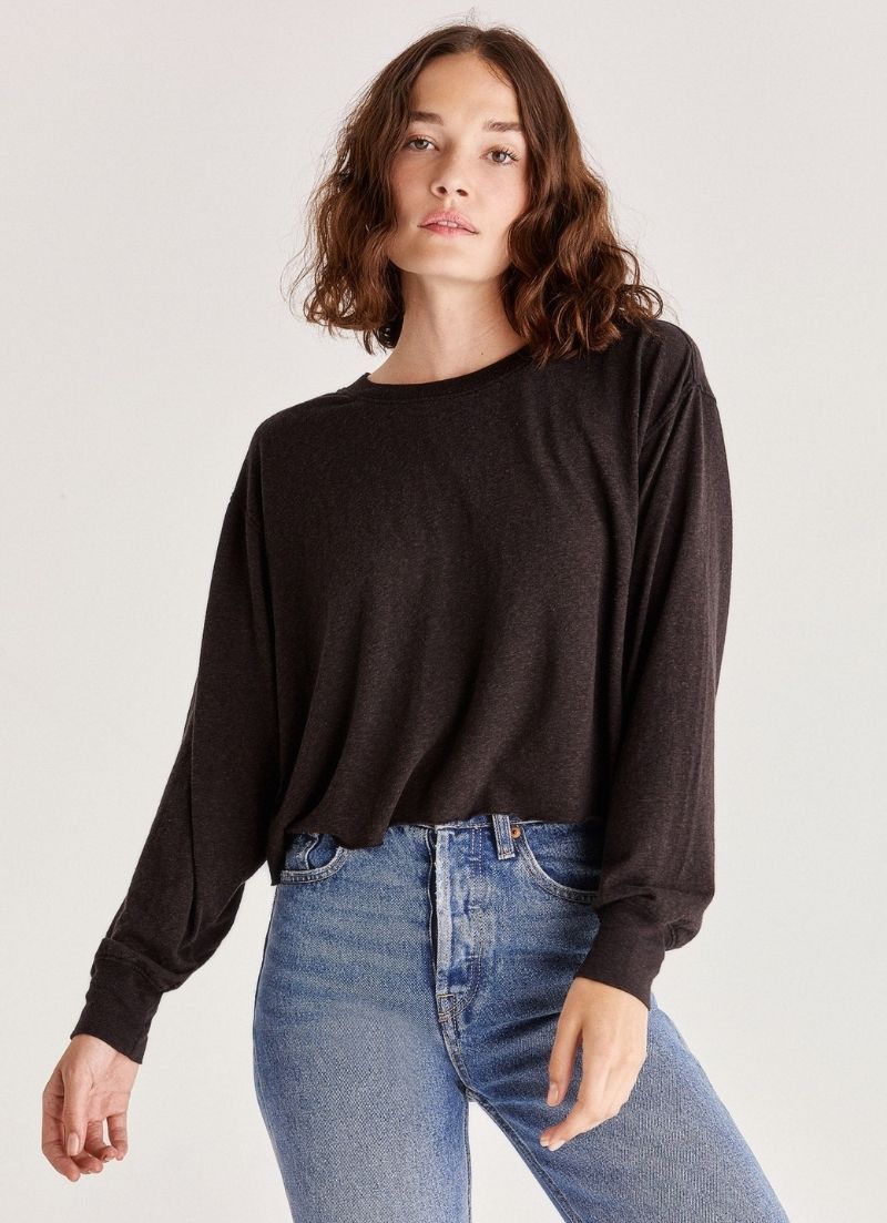 We love the softness and versatility of the Roxy Long Sleeve Top. This top features a cropped length with raw edge hemline and is designed with a crew neck and ribbed cuff sleeves. The Roxy will complement any high waisted bottom perfectly.