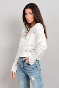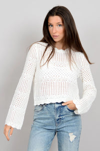 Elevate your style with our Zahia Long Sleeve Crew Neck! Featuring delicate scalloped edges and intricate crochet detailing, this top adds a touch of femininity to any outfit. With long sleeves, it's the perfect piece to keep you cozy and stylish all season long.