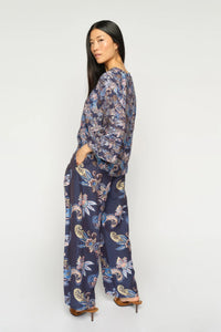 Embrace effortless elegance with the Zoke Paisley Pant—a wide-leg wonder that glides through your day with style. Draped in rich deep blue paisley, this lightweight beauty features a stretchy waistband that hugs just right, letting you move freely from morning coffee to evening plans. The lustrous fabric catches light beautifully, giving you that sophisticated shimmer without trying too hard. Dress it up or keep it casual—these trousers are your new go-to for looking put-together, always.